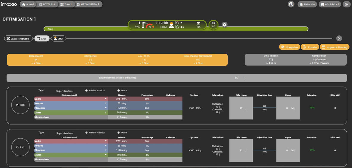 IMAAGO vous permet de définir précisément les ressources nécessaires à partir des contraintes réelles d’exécution : procédés constructifs, contraintes temporelles et/ou organisationnelles, temps unitaires…